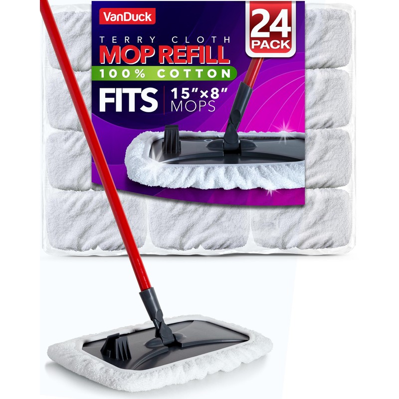VanDuck 100% Cotton Terry Mop Pad 15x8 inch (24-Pack)