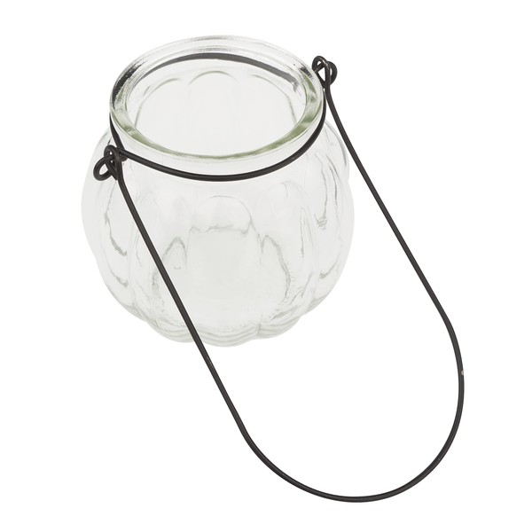 VBS glass lantern made of clear glass with black metal handle. The lantern glass has a height of approx. 7.0 cm and a diameter of approx. 7.5 cm. Ideal for a tea light or floristic decorations.