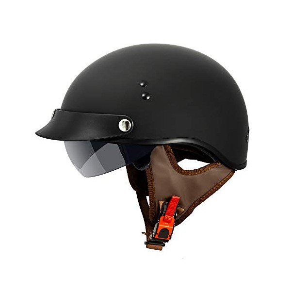 VCAN Cruiser Solid Flat Black Half Face Motorcycle Helmet with Drop-Down Sun Visor, Removable Peak and Quick Release Buckle (Medium)