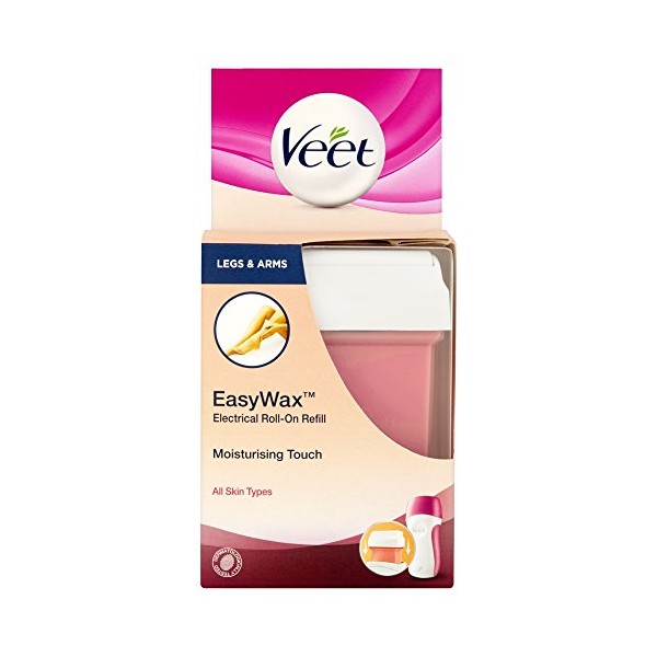 Product DescriptionDiscover the new Veet EasyWax Electrical Roll-On – a self-heating wax system with a roll-on applicator for salon results at home.Formulated with the same ingredients as the waxes used in waxing salons, Veet wax removes hair from the root at first application, and is effective on hair as short as 2mm. Specifically formulated with natural beeswax for all skin types including sensitive, skin is left moisturised and impeccably smooth for up to 4 weeks.Keeps Wax at the Right TemperatureThe self-heating unit heats the wax to the right temperature.Ensures Clean and Even ApplicationThe roll-on applicator ensures clean and even thin layers of wax for total coverage.Seven Steps to Salon-Perfect Results at HomeInsert the Veet wax refill into the deviceApply the wax in the direction of hair growth (from knee to ankle for legs) Check the slanted side of the roller head is in contact with the skin during application to allow the roller to glide over skin. The wax is ready when it glides out of the roller easily and applies evenly to the skin. Do not allow the wax to come into contact with water as it will become ineffective.Hold your skin taut to avoid discomfort Holding the bottom of the strip, very quickly and in one swift motion, pull the strip back on itself against the direction your hair grows (from ankle to knee for legs) keeping the strip as close to the skin as possible. The faster you remove the strip, the more effective it will be.Unplug the device After use the refill will be hot. Allow it to cool down before removing the refill from the device.Plug the electrical cable into the device and in the socket The red light turns on to confirm the device is heating. Place the plugged device on its base and leave it connected for 20 min. After 20 min, the wax is ready for application. Start to apply the wax to a small area first, to check that the wax applies easily. If the wax does not roll easily onto the skin, let the device warm the wax for at least and additional 5 min.Immediately place the strip over the layer of wax, ensuring there is at least 1 cm at the bottom which is wax free Rub the strip repeatedly over the wax in the direction of hair growth.When you have finished waxing, remove any wax residue from your skin Remove any residue with a perfect fresh wipe (you can alternatively use the back of a used strip) This wax cannot be rinsed off with water.Good hair removal is an essential element of any holiday. When it comes to hair removal, the choice of products is vast so it's best to consider the following: Time you have available – 10 minutes to get ready for a date or time to really pamper yourself? Your pain threshold – let's face it, waxing isn't pain free despite the fantastic results The result you want to achieve – longer lasting, soft hair or a quick fix that'll last 1-2 days How does waxing work?Wax clings to the hair shaft (and not the skin), which is then removed from the root by the mechanical action of removing the wax or fabric strip from the skin. Hair regrowth is soft to the touch and you will not need to depilate again for up to 4 weeks. Is waxing suitable for everyone?Waxing is not suitable for the elderly or diabetics, and though suitable for pregnant women, may cause bruising. Certain areas of the body should only be waxed if you have previous waxing experience. It is advisable for children under 16 to be supervised by an adult when using any depilatory method. How long do I have to wait between applications of Veet Wax products?Hair growth is very individual so timings vary. Hair should be between 1.5 and 5mm long as a minimum, depending on which Veet wax product you are using. Why do I need waxing experience for my underarms and bikini line, but not for my legs?Because the bikini line and underarms are more sensitive and challenging areas to wax than legs. Top Waxing Tips Exfoliate your skin 24 hours before waxing: the wax will cling better to the hair and will be more effective Rub an ice cube over the area you plan to wax, dry your skin thoroughly and then begin waxing. This will quickly cool your skin making the hair easier to remove in one go To soothe the skin after strip removal, immediately apply pressure with your han. Sensitive skin can be susceptible to red bumps after hair removal no matter what depilation method is used. To avoid red bumps it's important not to wax your legs before or after a very hot bath or shower, as this can irritate the skin Try to avoid waxing during your period as skin is at its most sensitive Exfoliate once or twice a week using a body brush or salt scrub to remove dead skin and give your circulation a boost If you get the odd in-growing hair, rub lemon juice on to the affected area – the fruit acids help to exfoliate the skin which should relieve the problem If you're waxing for a special occasion, make sure you allow a day for any redness to die down If you haven't waxed before, try waxing your legs f