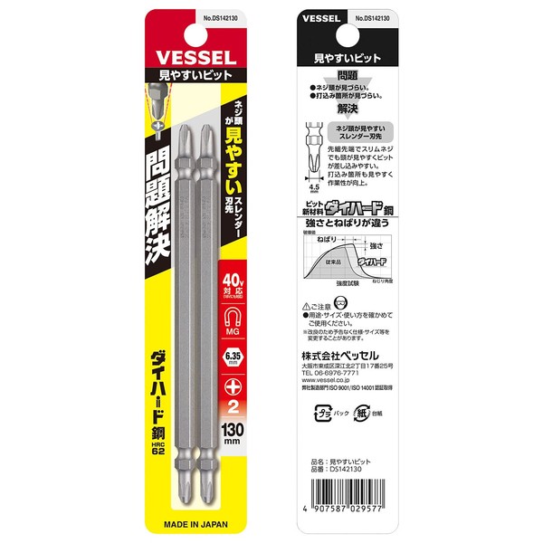 Vessel DS142130 40 V Compatible Problem Solving Bit, Easy to Read Double Ended Bit +2 x 130, Set of 2