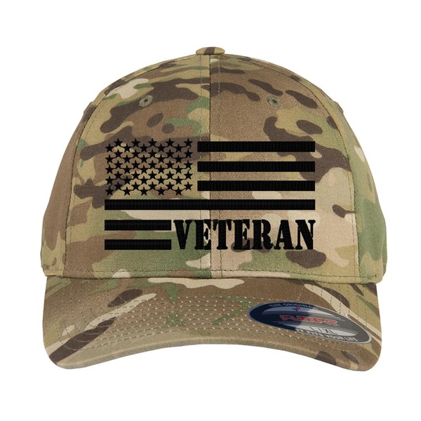 Veteran American Flag Embroidered Flex Fitted Hat. Custom Embroidered Baseball Cap (S/M, Multicam)