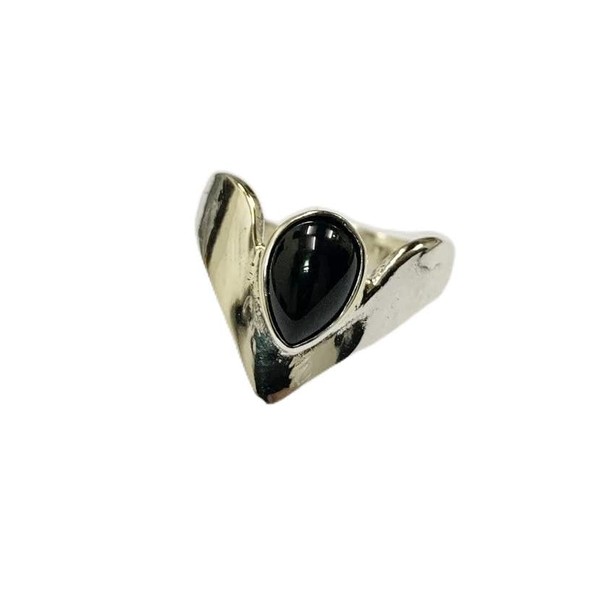 VIE Chevron Crystal Ring, Black Agate
