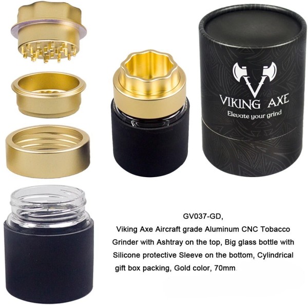 Viking Axe Grinder with Glass Storage + Lock Function + Ashtray Top, Gold