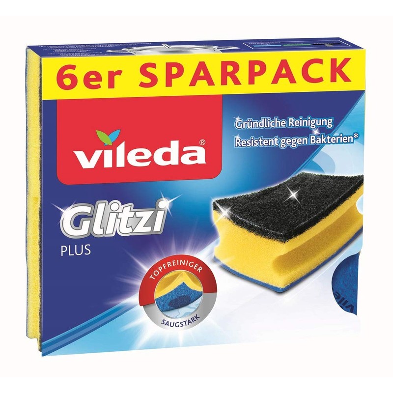 • The Vileda Glitzi Plus scourer has two powerful cleaning sides for dishwashing and cleaning surfaces.