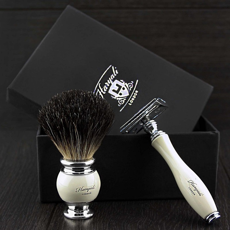 Vintage Replacement Bare Blade Safety Razor Badger Shaving Brush Gift Set Kit