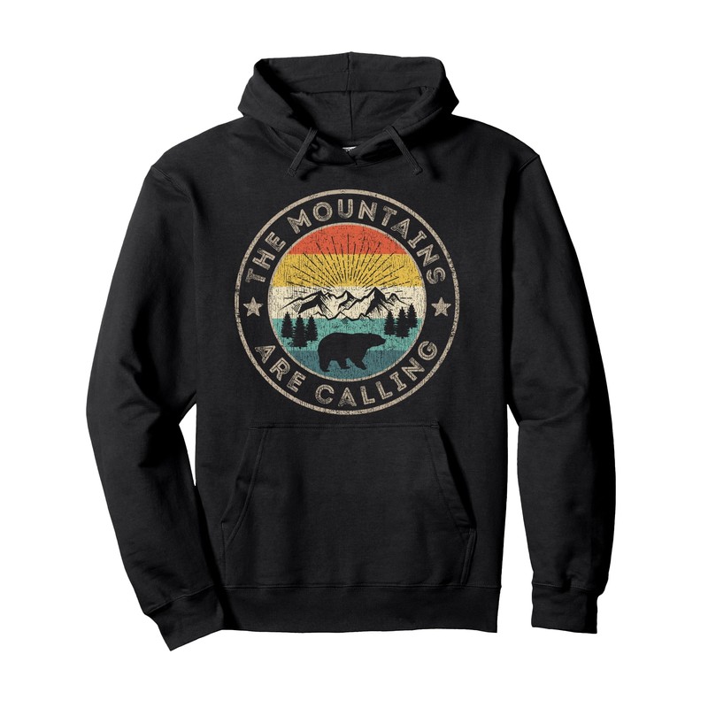 - The mountains are calling graphic in retro style colors is the perfect gift idea for any grizzly, black or brown bear loving mom, dad, son or daughter that believes saving nature and the environment. Vintage and distressed graphic. Nature lovers apparel.