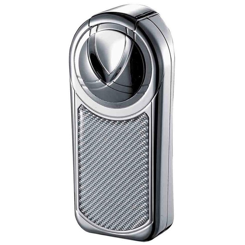 Visol Dobrev V Chrome and White Carbon Fiber 5 Torch Flame Table Lighter