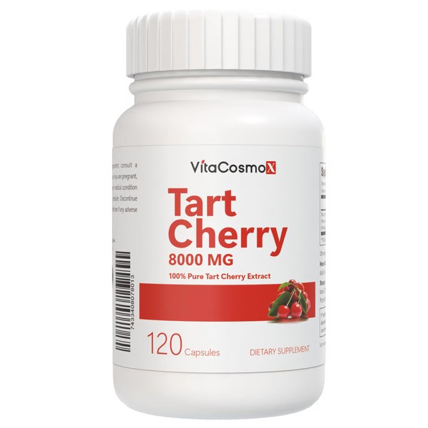 VitaCosmoX Tart Cherry Extract Supplement, 8000mg, 120 Capsules, Vegan