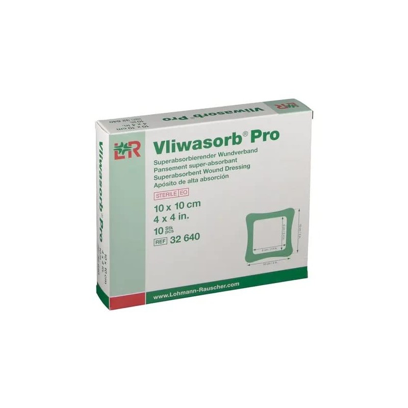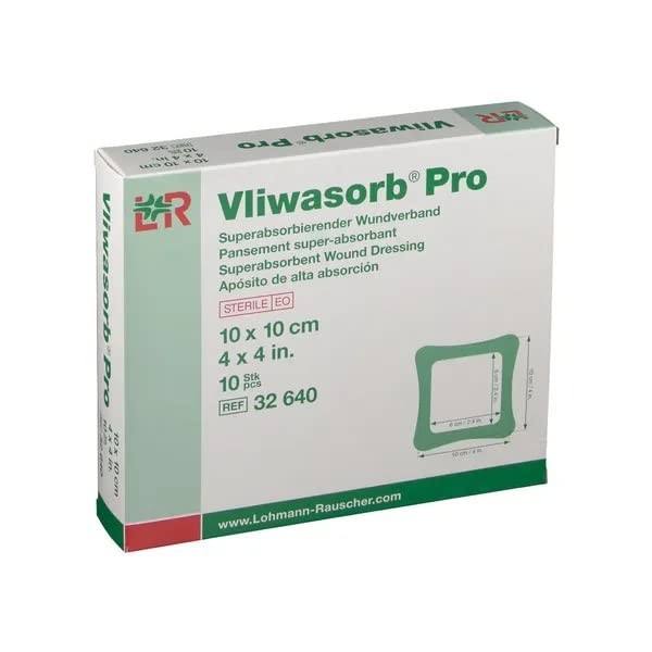 Vliwasorb Pro Super Absorbent Wound Dressing, 10 x 10 cm, Sterile, Individually Sealed, Pack of 10