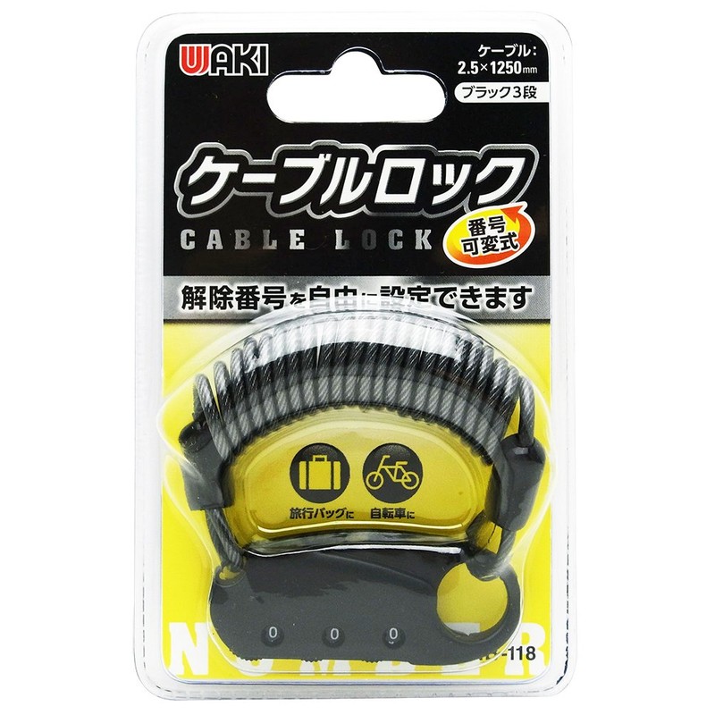 WAKI Number Variable Retractable Cable Lock 3 Tier 1.25 m