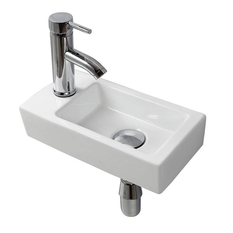 Wall Hung Basin Sink Small Cloakroom Basin Rectangle Ceramic Wash Basin Right Hand (Left Hand)