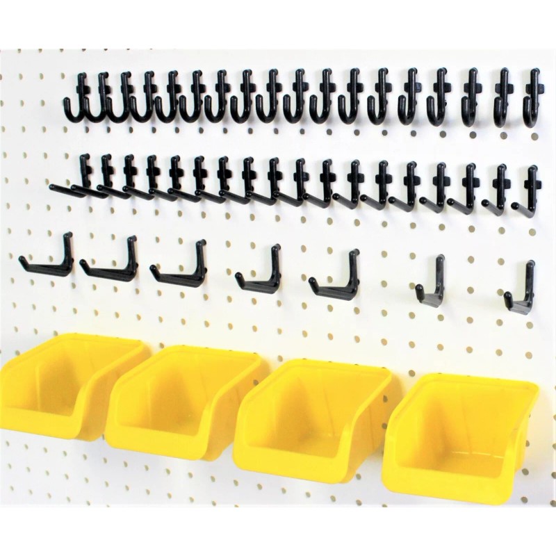 WallPeg 43 Kit -Peg Hooks & Plastic Bins - Organize Tools Crafts Garage & More