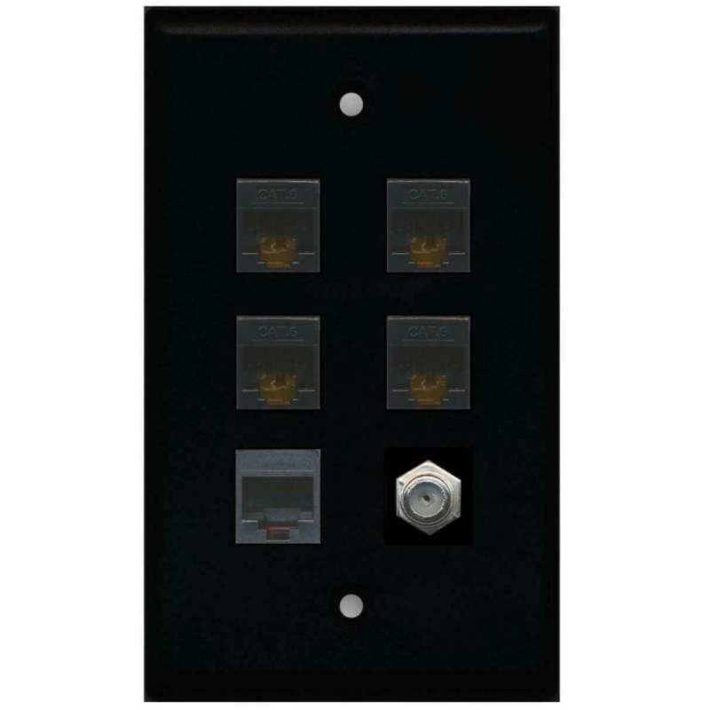 Wallplate City 4 Port CAT6 Ethernet Coax Phone Wall Plate Solid [ BLACK ]