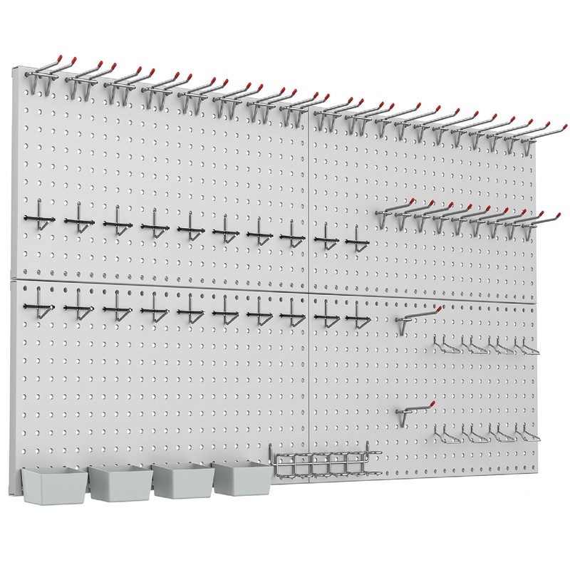 - Modular Pegboard System: Package includes 4 panels with 93pcs accessories. Compatible with all standard pegboard hooks to meet your storage needs. Modular design allows you to position panels as needed. Customize your workspace with this versatile 97PCS pegboard system