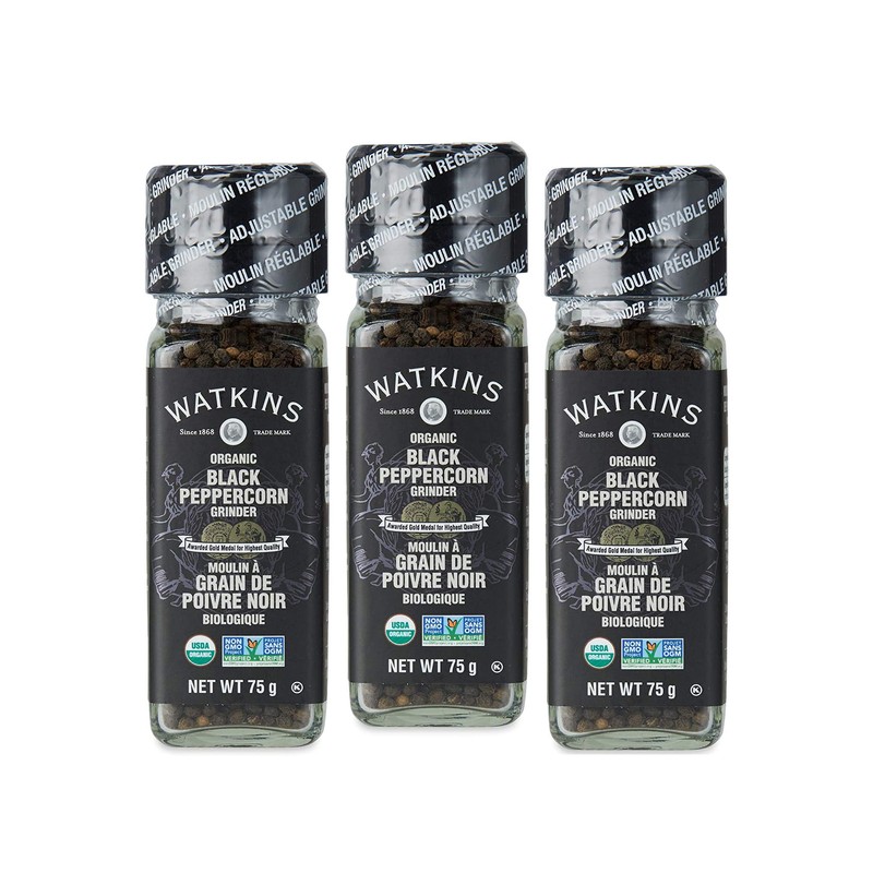 Watkins Organic Black Peppercorn Grinder, 2.6 Ounce, 3 Count