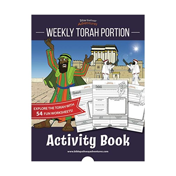 Become Torah time travelers through Bible study! Your children will LOVE learning about the Torah with our Weekly Torah Portion Activity Book. Includes 54 fun Torah Portion worksheets spanning the books of Genesis, Exodus, Leviticus, Numbers, and Deuteronomy. PLUS five weekly study guides and a handy answer key for teachers and parents. Suitable for Kids Ages 7-12. Our Weekly Torah Portion Activity Book includes: Creative writing and coloring activities Scripture references for further Bible study Quiz questions to help your children remember what they've learned