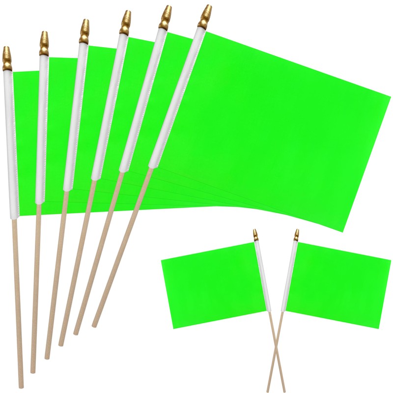 WEITBF 12Pcs 8×12 Inch Solid Green Flags Small Blank Sublimation DIY Flags on Stick Mini Triangle Handheld Solid Color Graffiti Flag