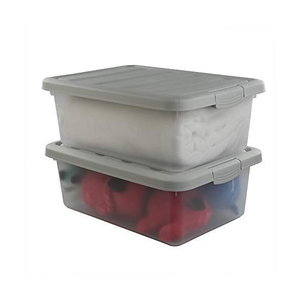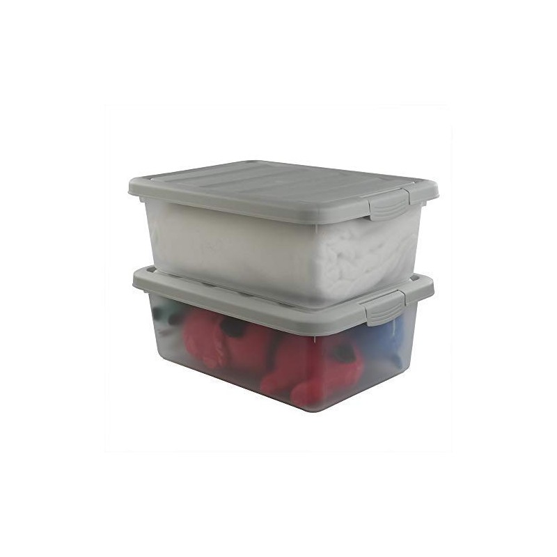 Wekiog Plastic Stackable Storage Bin Frosted Clear with A Grey Lid, Large Bin 14 Quart, 2 Packs.