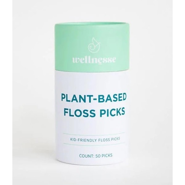 Wellnesse Plant Based Floss Picks - Kid Friendly - 50 Picks - Corn Starch Handle