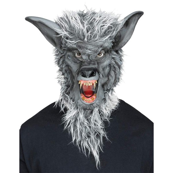 This mask is totally unique. Latex facial detailing with fur covered back and real acrylic dentures give the most frightening look possible. Grey. One size fits most.