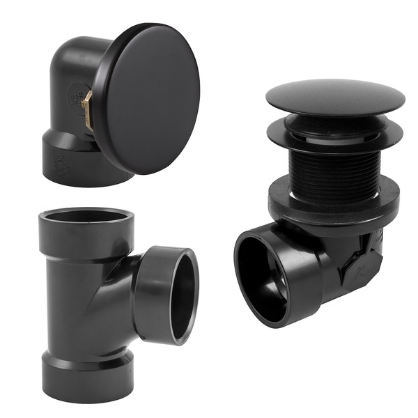Westbrass D593ARK-62 Plumber's Pack Bath Waste Assembly with Tip-Toe Drain Plug, Illusionary Overflow Faceplate and SCH. 40 ABS Elbows, Matte Black