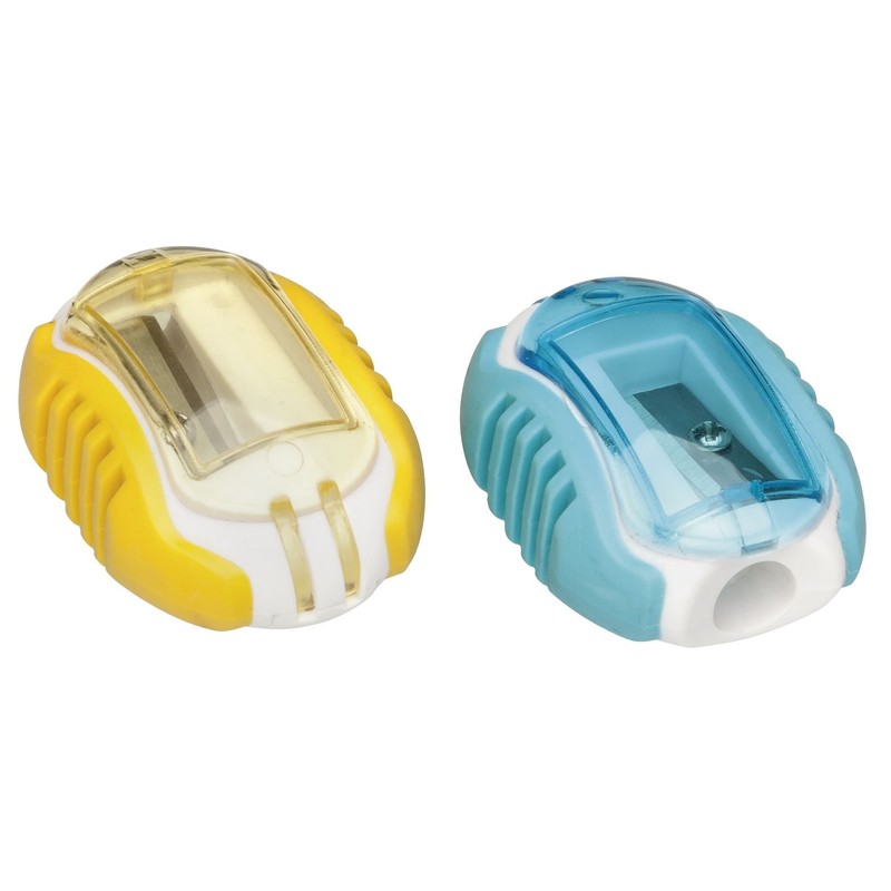 Westcott 15737 00 A Easy Soft Grip Pencil Sharpener – Assorted Colours with Transparent Lid, 2 Pack