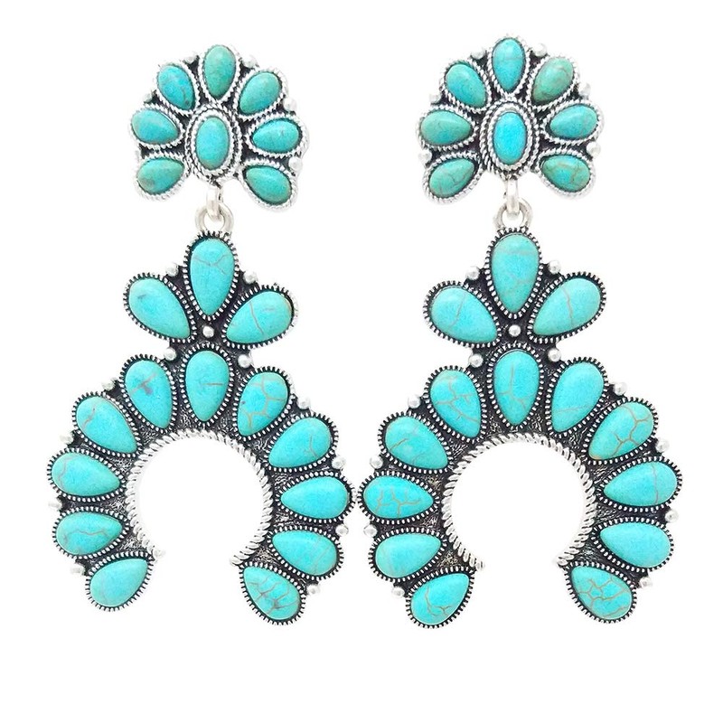 Western Squash Blossom Turquoise Post Earring (Turquoise)