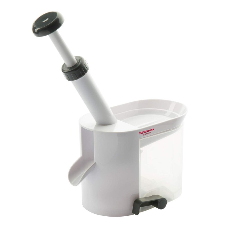 - Box contents: 1 x Westmark cherry stone with chute and core cassette, with packaging, dimensions: 19 x 11.5 x 22 cm, weight: 200 g, material: plastic (PP/silicone)/stainless steel, colour: white/anthracite, 40302260