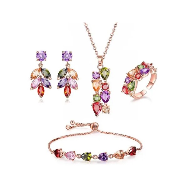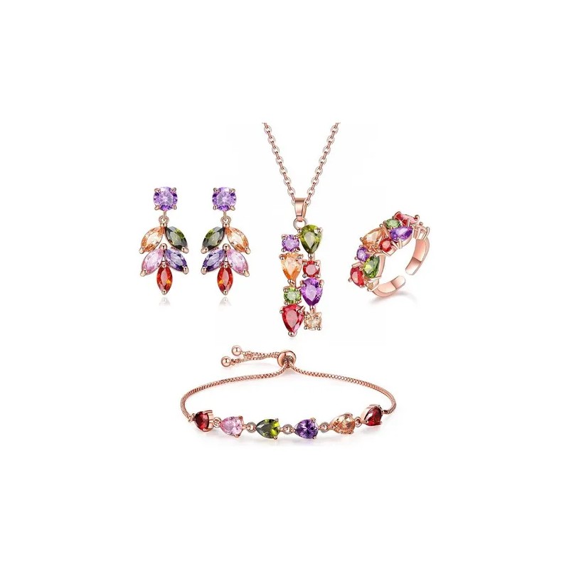 Wf- 1 Conjunto Anillo, Collar, Aretes Y Pulsera For Mujer