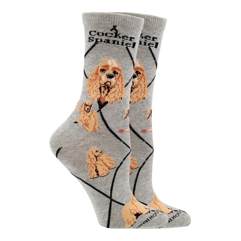 - PERFECT FOR DOG LOVERS - The merry and frolicsome Cocker Spaniel, with his big, dreamy eyes, is one of the world's best-loved breeds. Cockers gained their wide popularity as all-around companions. Let them know you are there with an all over print sock from WHD.