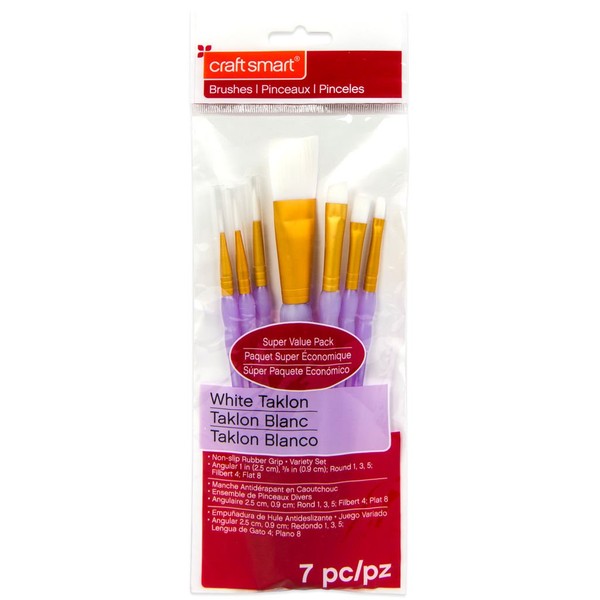 White Taklon Angular Variety Brushes Super Value Pack by Craft Smart® 7 Piece