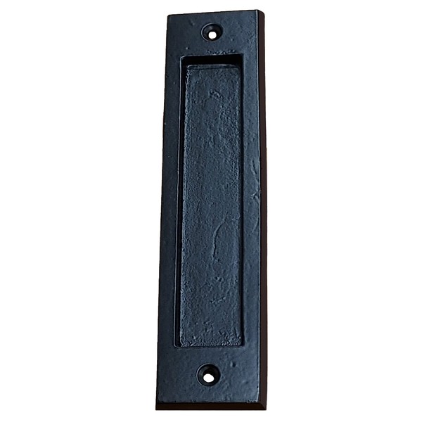 - A new exclusive and very pleasing design. Quality built! This finger pull is our largest size. It measures 7" long by 1 3/4" wide. It is 3/8" thick which means it will protrude 3/8" form surface of door. (be sure you have clearance to allow for this). Screw holes are 8" apart, center to center. Recessed depth for fingers is 1/4" Weighs 10 oz. These are not the lightweight cheap stamped steel type. Perfect for barn doors and sliding doors etc. A larger flush pull that can mix with many themes.