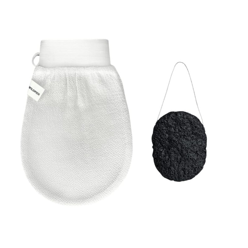 Wildpier Deep Exfoliating Glove and Bamboo Charcoal Konjac Sponge Bundle