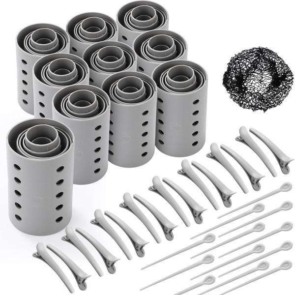 WILLBOND 141 Pcs Hair Rollers Set Include Plastic Hair Rollers with Pins and Clips (Grey)