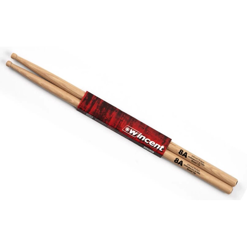 Stone-ground in Sweden from the choicest cuts of Kentucky-grown American Hickory, Wincent's Unique Wax Protection (UWP) proprietary sealer is employed for better grip, increased durability and extended playing lifetime. A longer-lasting alternative to traditional drum sticks, Wincent's 8A model features an extended, gradual shoulder taper for stability and improved balance. Features ball tip for articulate, powerful sticking and Butt-End Branding for quick access.