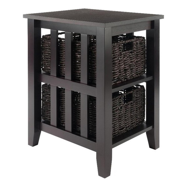 Winsome Morris Wood Side Table with 2 Foldable Baskets in Espresso