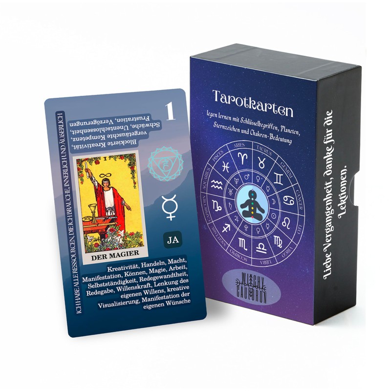- Tarot Cards for Beginners - With keywords, meanings, chakras, planets, zodiac signs, elements, yes or no answers, and affirmations, this card set provides all the necessary information to interpret the cards and develop your skills.
