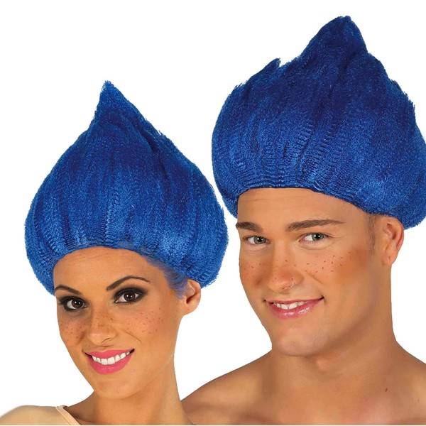 Witzige Troll Perücke für Erwachsene blau - Blau