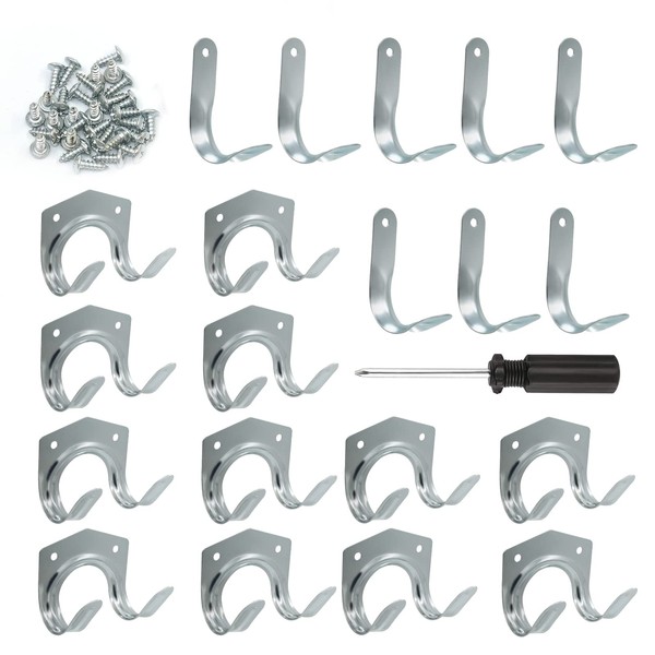 Wkmamo Pack of 21 Garden Tool Holder Hooks, Tool Holder Double Hooks, Single Hooks, Tool Holder, Hooks for Garage Organisation with Screwdriver