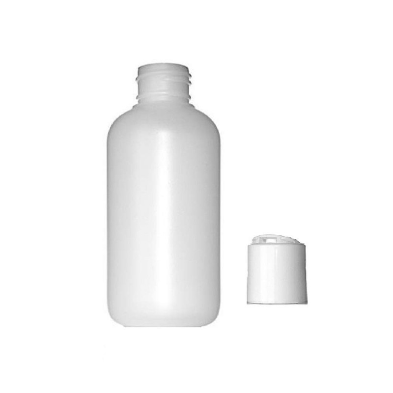 - 3 oz White boston round bottle with press disc