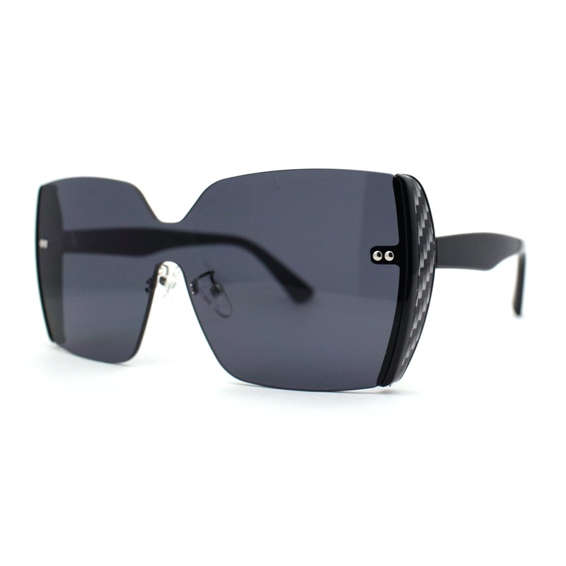 Womens Shield Rimless Oversize Butterfly Diva Sunglasses Black Carbon Print
