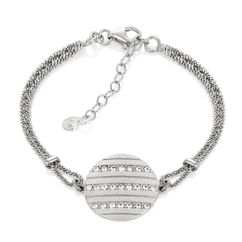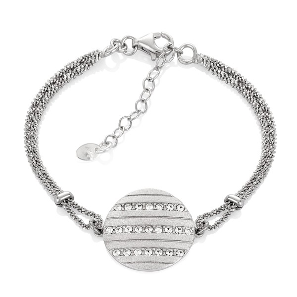 Womens Sterling Silver 925 Bracelet With Round Pendant Adjustable Length
