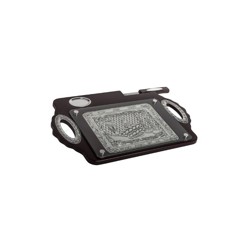 Wood & Silver Plated Challah Board with Knife