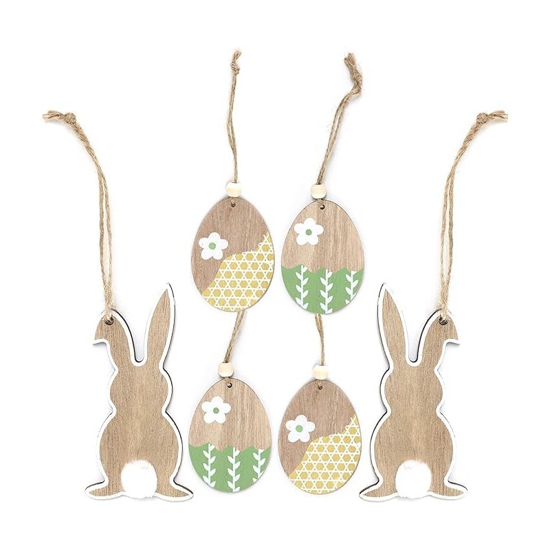• Pack of 2 wooden Easter hanging rabbits & pack of 3 hanging eggs
