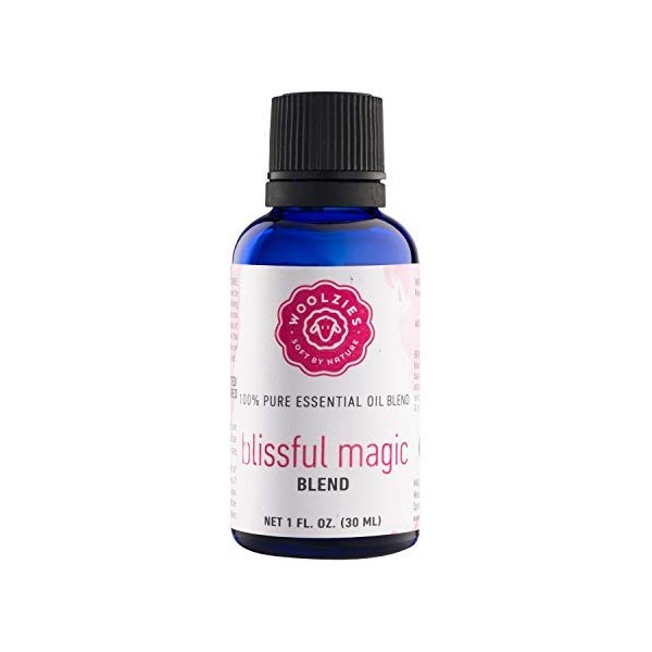 • Woolzies Blissful Magic Oil Blend encourages positivity and confidence. It has a sweet, floral, exotic aroma that soothes the body and mind. This blend includes oils of jasmine, neroli, rose, white lotus, and vetiver. Blissful Magic Blend can be inhaled, diffused, and applied topically.