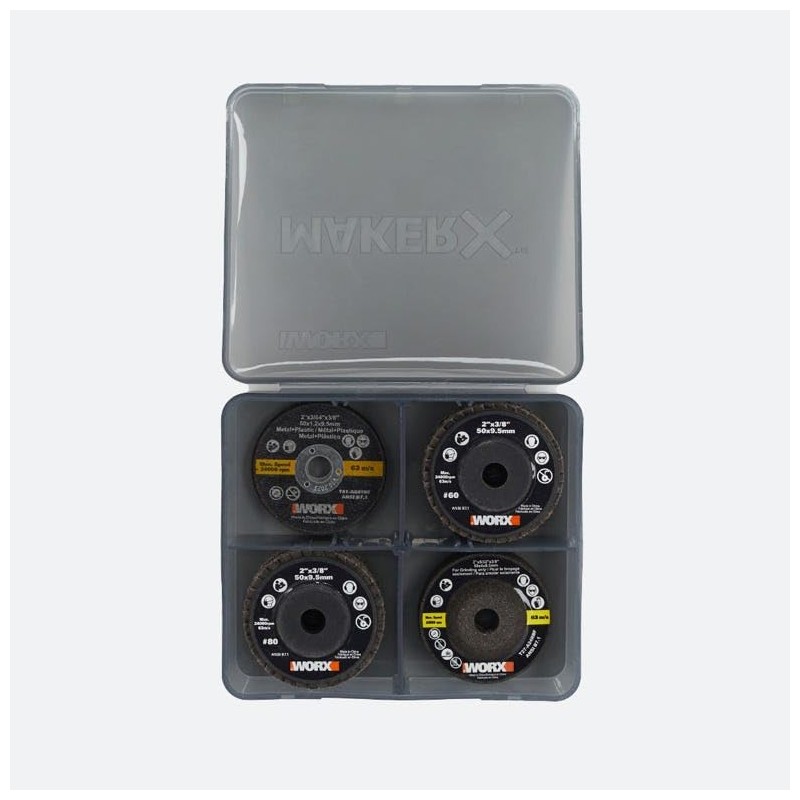 - Accessory kit only, MAKERX Angle Grinder (WX741L.9) not included.