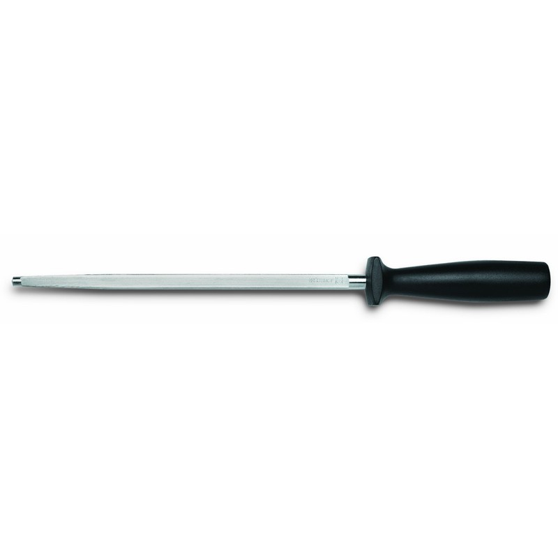 Many chefs prefer sharpening steel to a slotted sharpener or whetstone for keeping their knife collection in top cutting shape. This particular Wüsthof steel features a nine-inch rod, grooved for ease of use, which is made of magnetic steel that attracts metal fibers during the sharpening process (thus preventing them from flying all over the kitchen workspace). The black composite handle provides a good grip and features a reasonable bolster to help prevent the knife blade from hitting the knuckles. While this model does not have a hanging loop, the steel should fit handily into a provided slot in most wooden storage blocks. The sharpening steel is made in Solingen, Germany, the home of Wüsthof cutlery since 1814, and is covered by a lifetime warranty. _\--Ann Bieri_