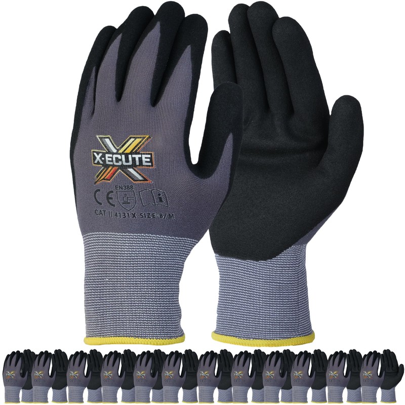X-ECUTE GripFlex Pro 12 Pack Safety Gloves (Medium)