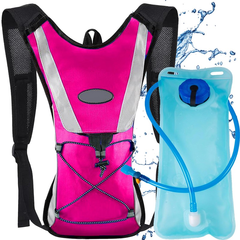 - 2L hydration bladder: The mouthpiece has been upgraded to a simple on/off pressure valve and prevents leakage. Simply bite into the mouthpiece to suck water, you can easily control the water. Whenever you need without taking your hydration pack with you or stopping your steps. Hydration helper.